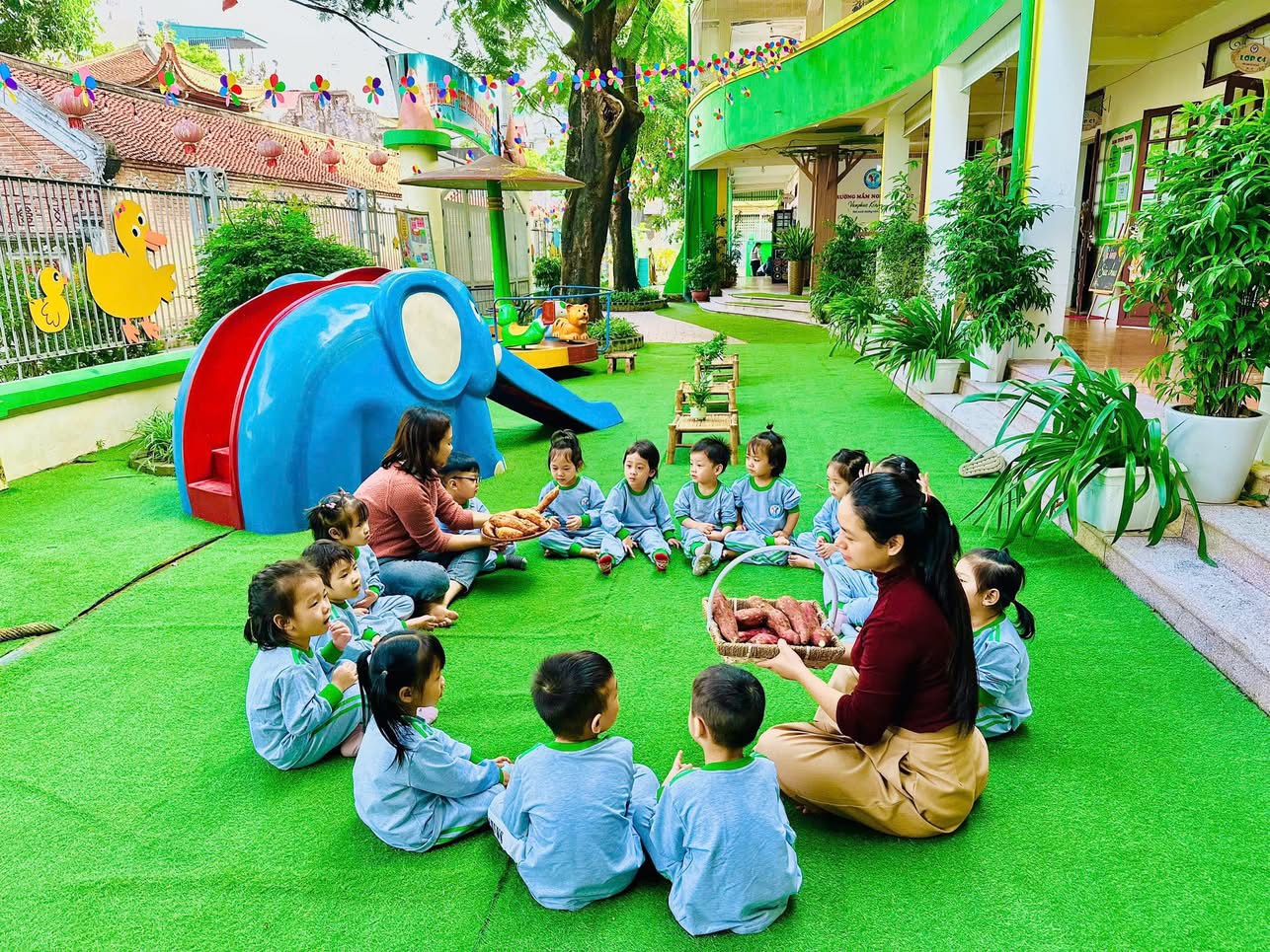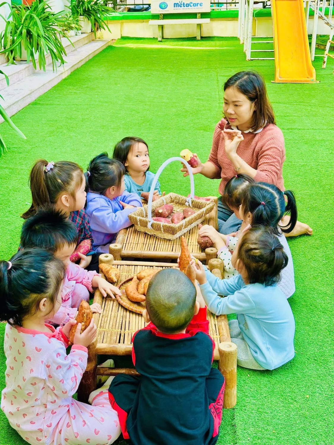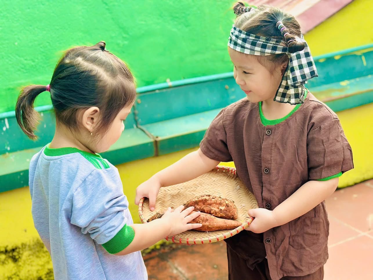 Một hoạt động đơn giản nhưng lại giúp bé cảm nhận sự ấm áp của tình bạn, của cô và của hương thơm của củ khoai nướng