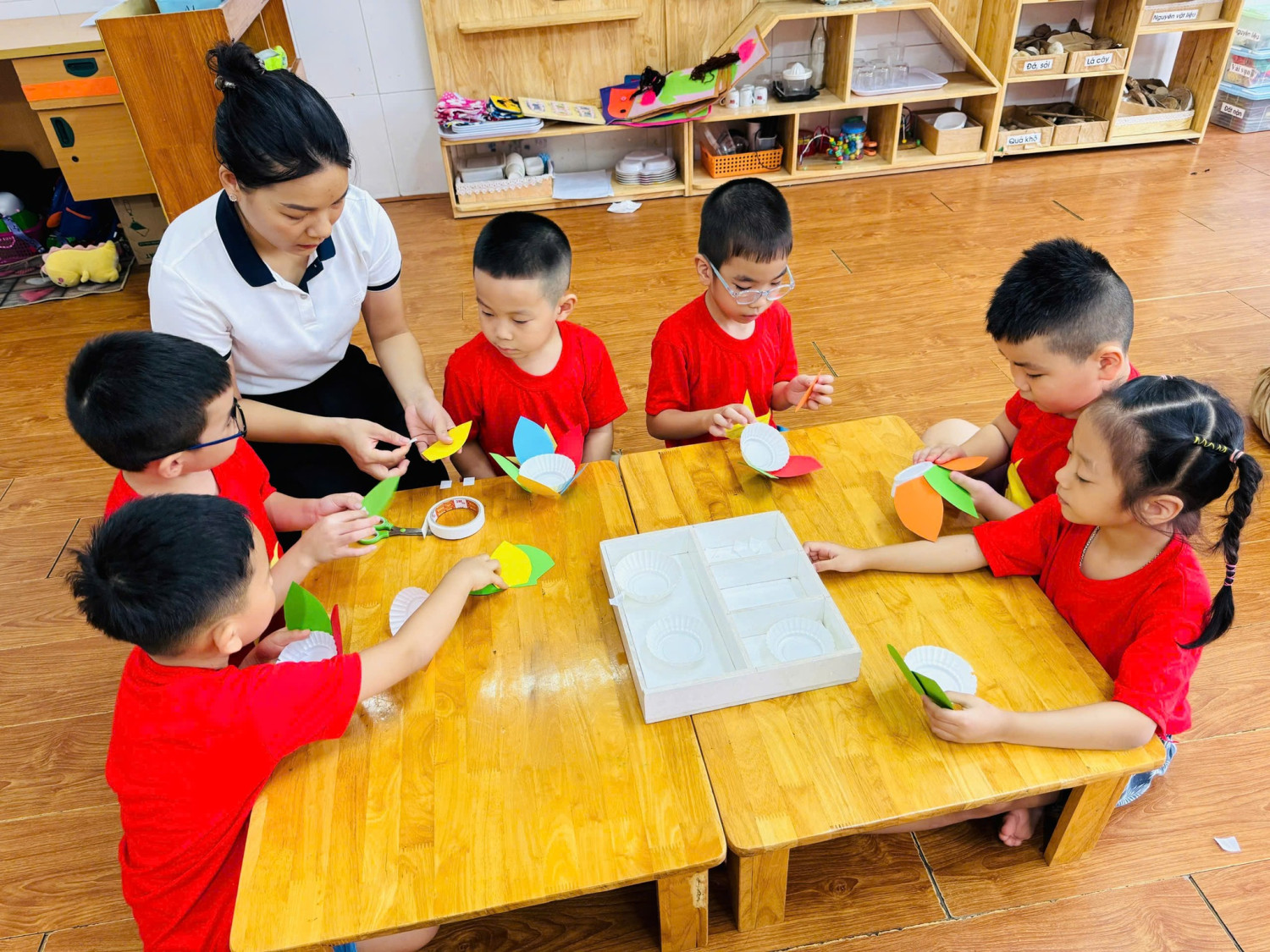 Hoạt động tạo hình: Làm đèn hoa đăng.