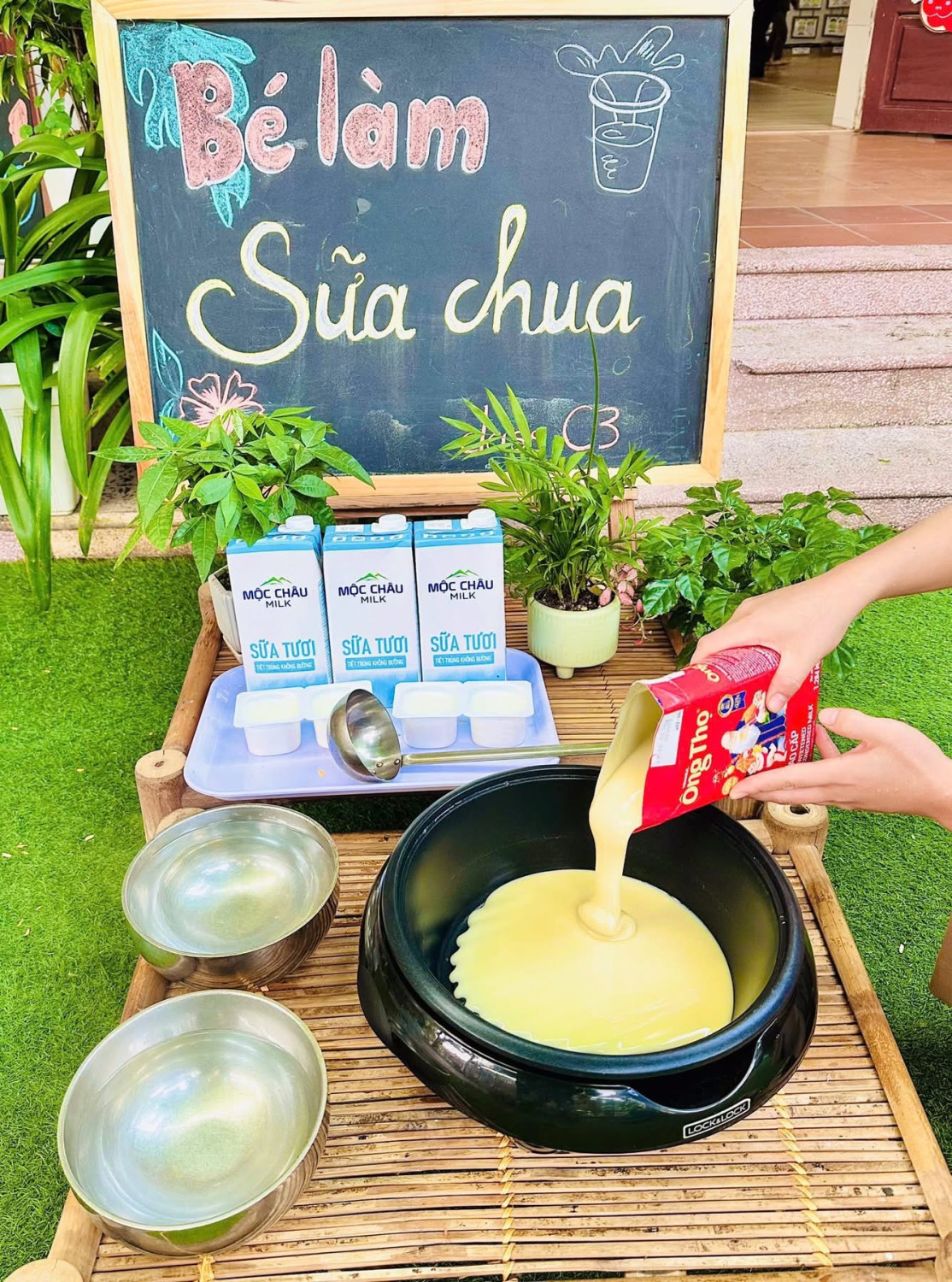 🐮 Từ những hộp sữa tươi, sữa Ông Thọ và sữa chua, bé nào cũng háo hức được “xắn tay áo” cùng cô pha chế .