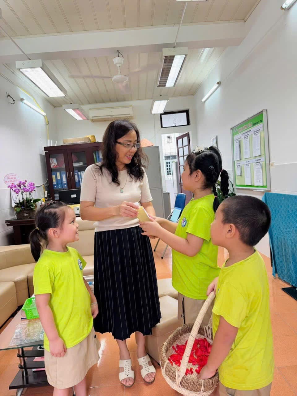 🎁 Sau khi hoàn thành, các con đã mang sản phẩm của mình đi tặng các cô trong BGH nhà trường như một lời tri ân. Và đặc biệt hơn cả, các bé còn dành món quà yêu thương để tặng mẹ – người phụ nữ đặc biệt nhất trong lòng mình 🥰
