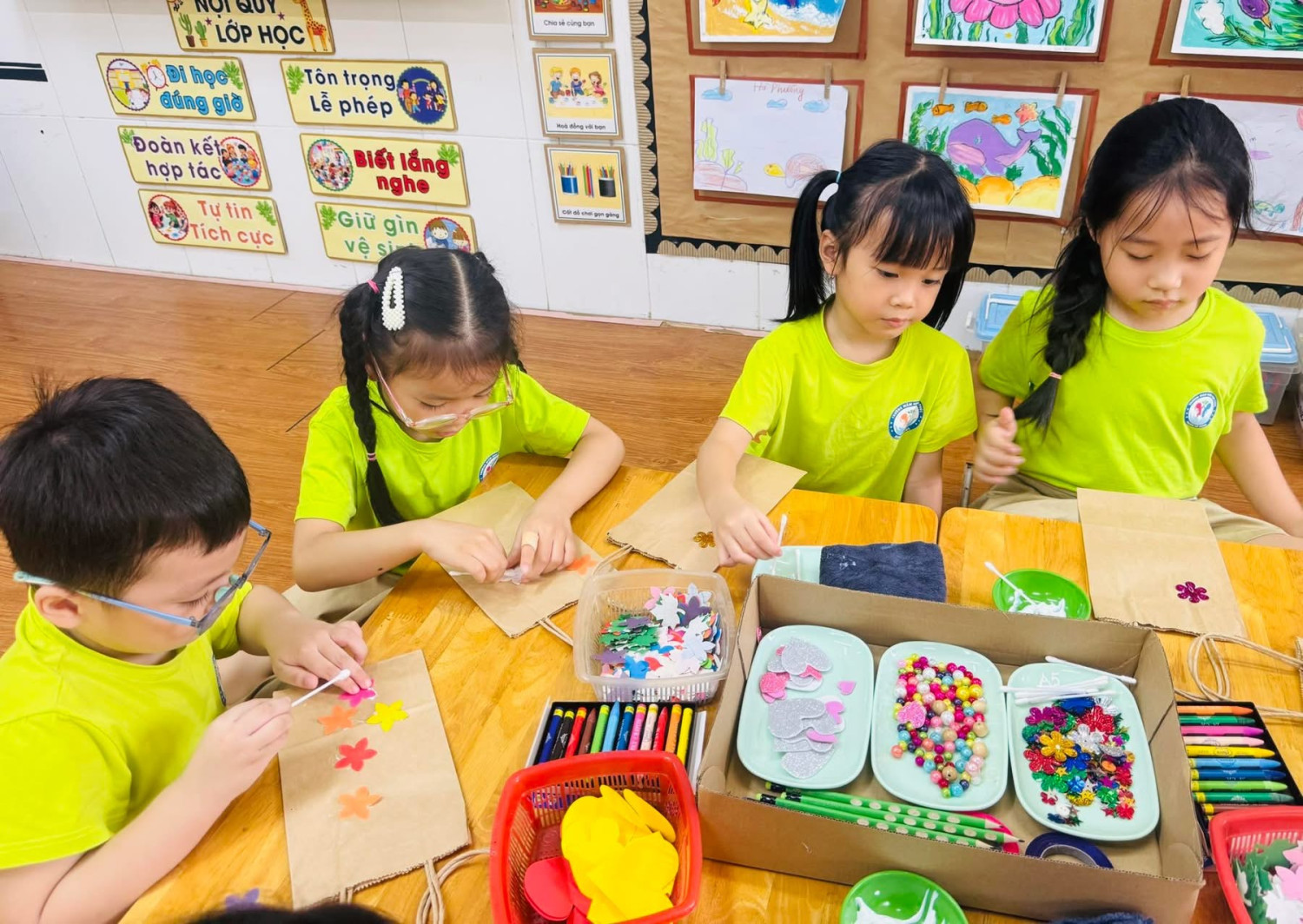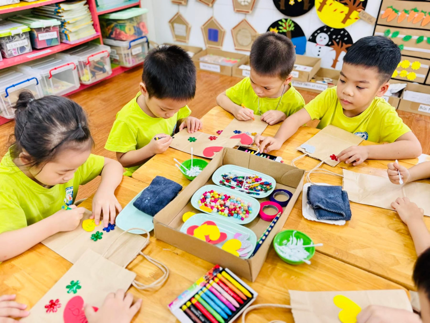 🌈Món quà yêu thương từ những bàn tay nhỏ xinh ! Những chiếc túi không đồng Handmade nét cắt, hình vẽ, những bông hoa được dán trang trí có thể chưa hoàn hảo nhưng tình yêu thương các con được các cô hướng dẫn là vô bờ bến.
