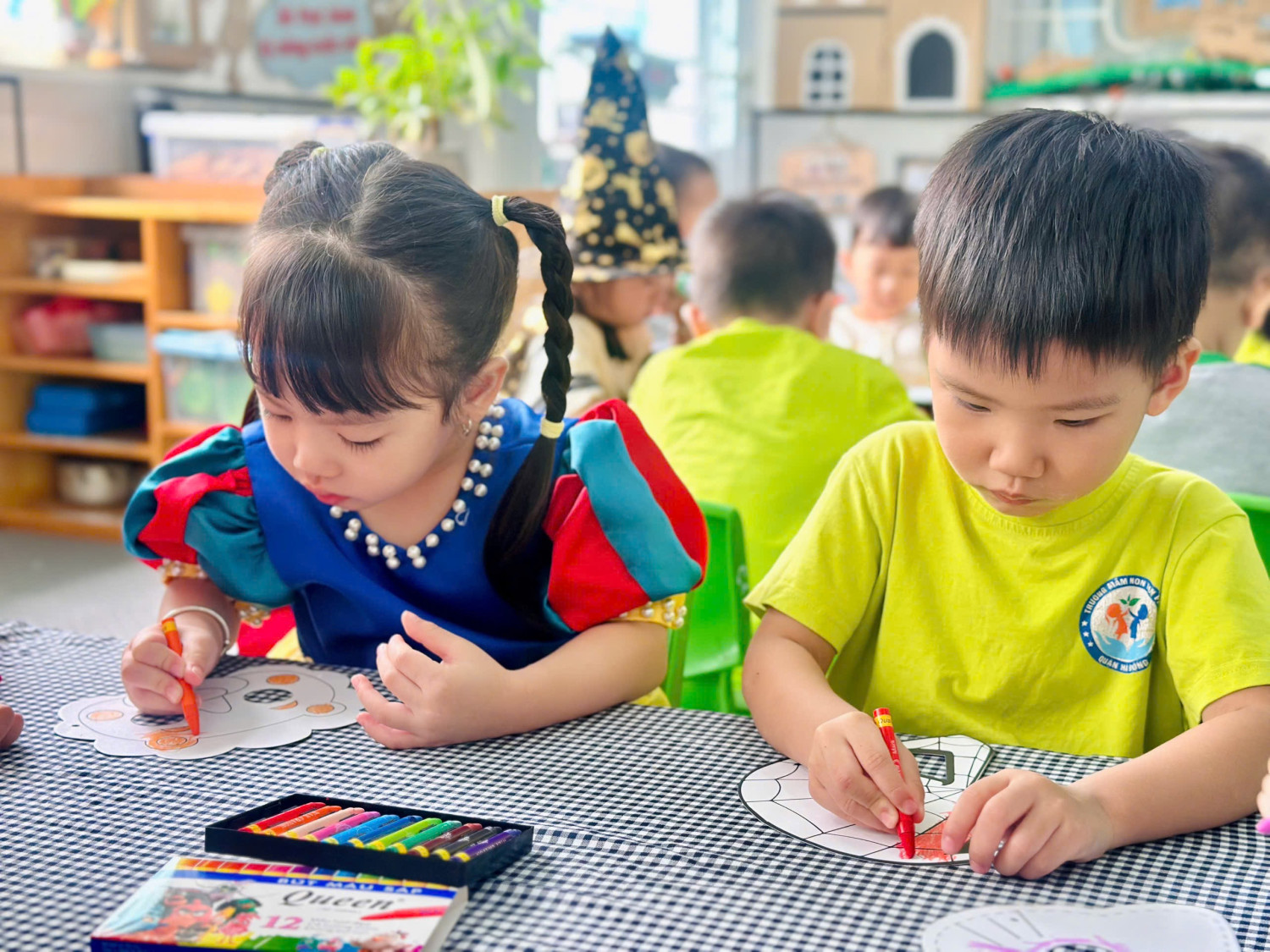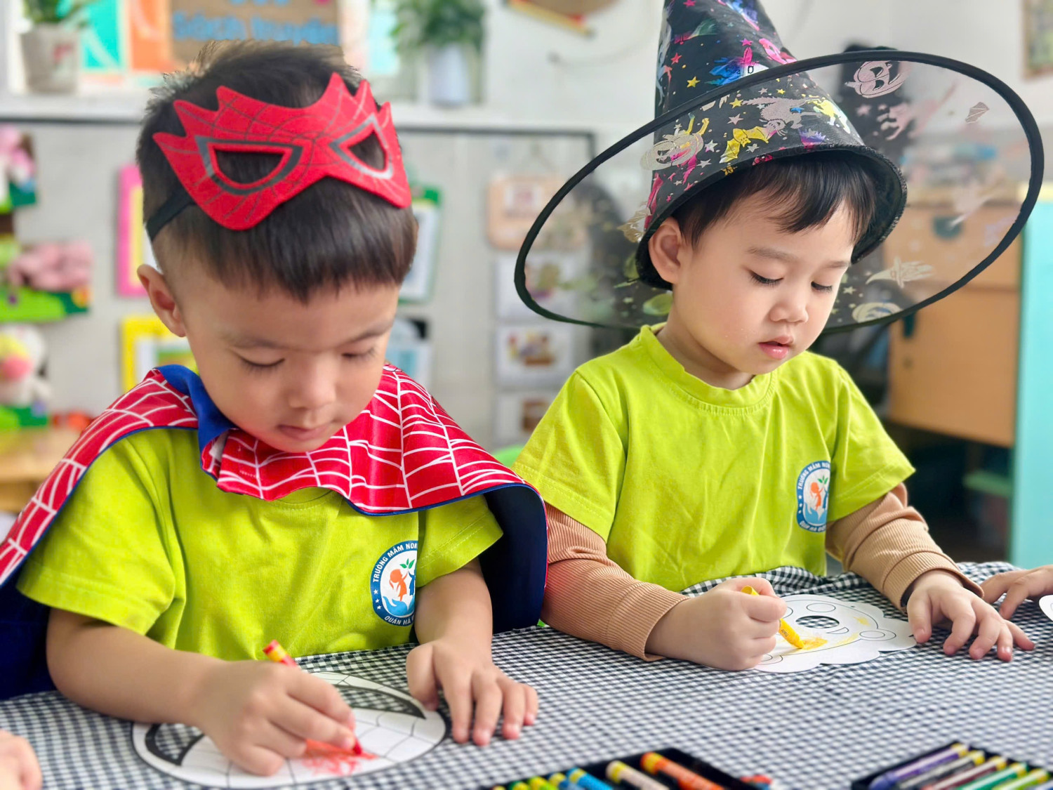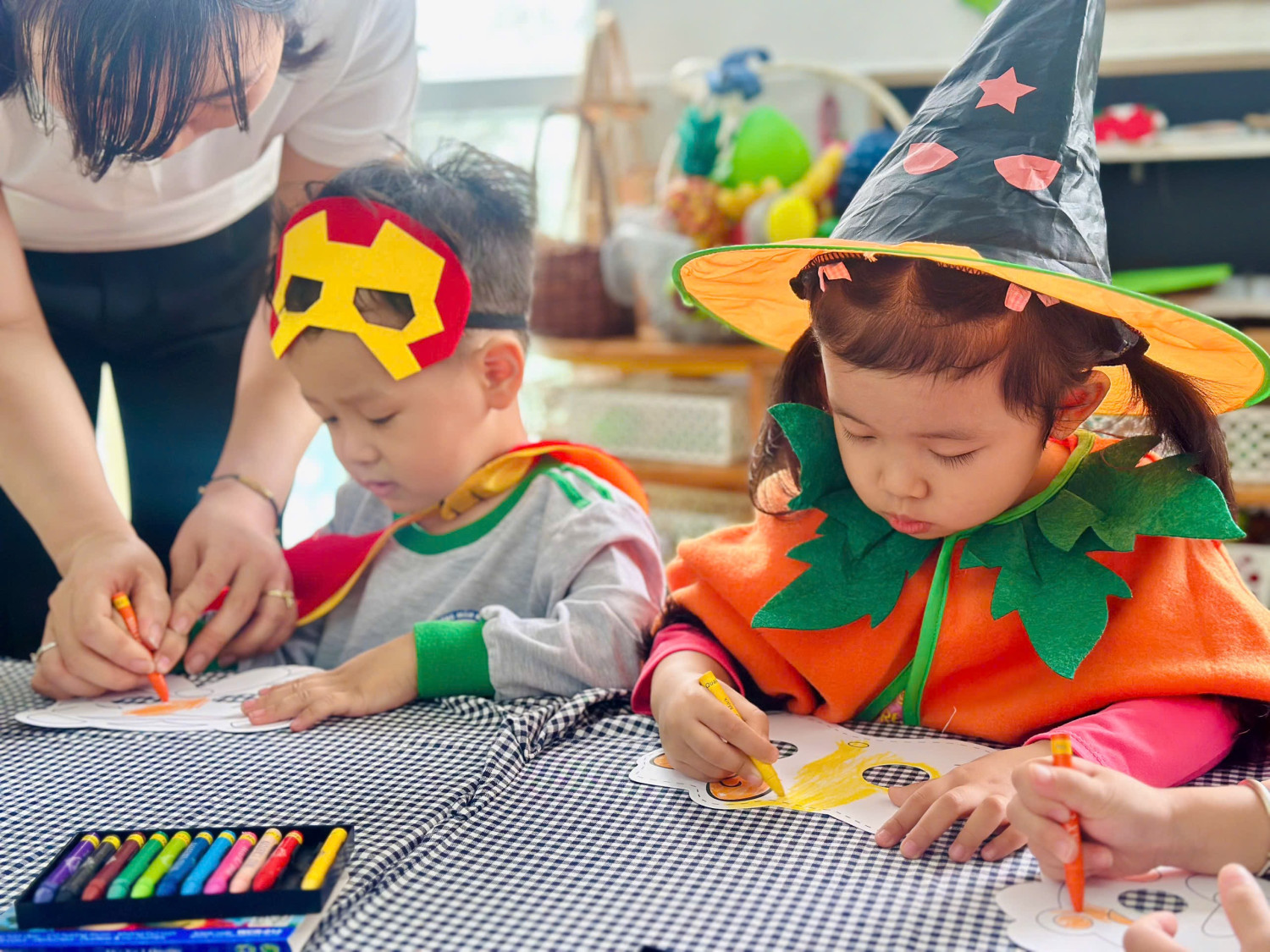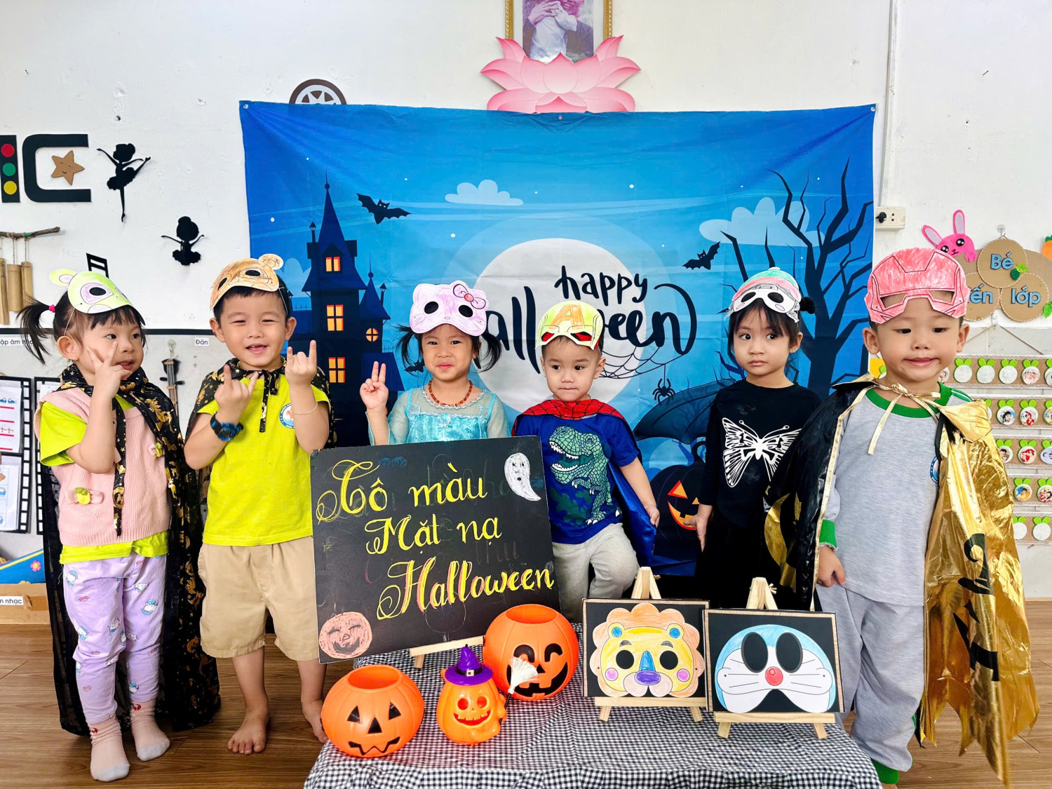 Hoạt động giúp các con rèn luyện sự khéo léo của đôi tay, khả năng phối màu, đồng thời mang đến niềm vui háo hức chuẩn bị cho ngày hội Halloween sắp tới. 👻