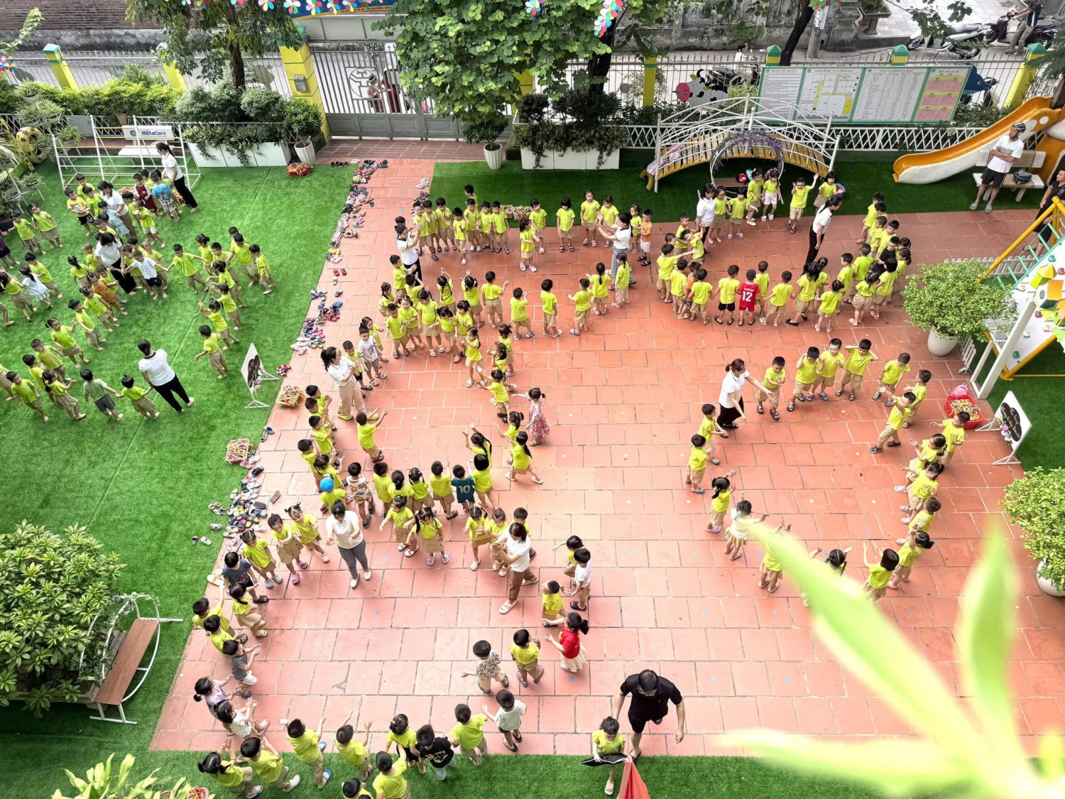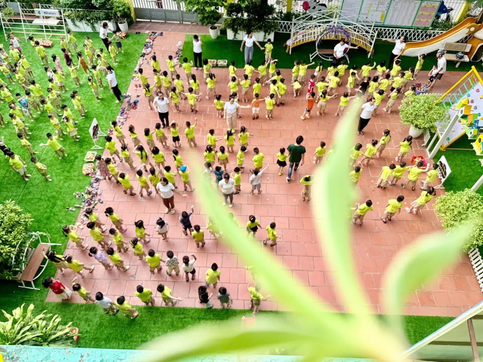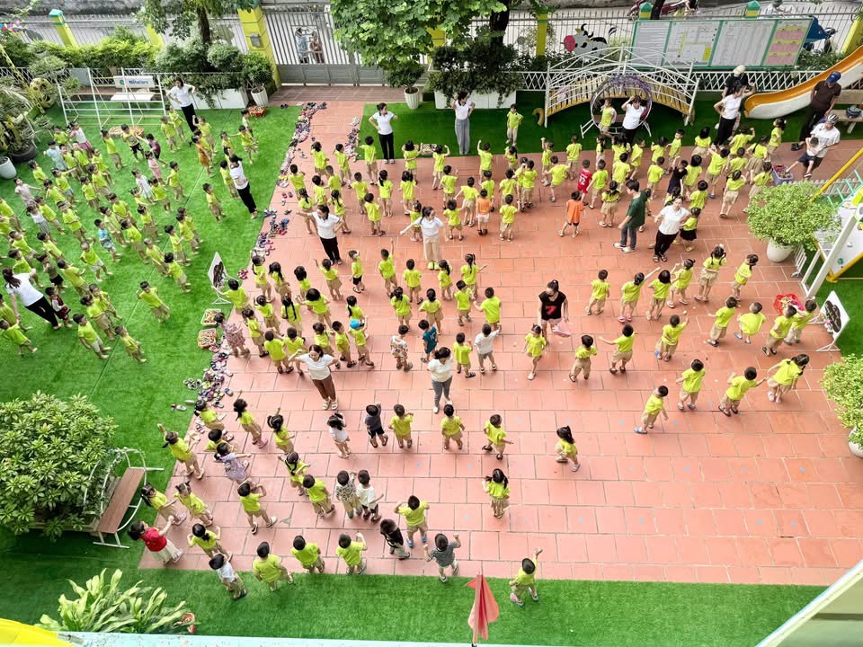 👉Một ngày mới bắt đầu bằng nụ cười ríu rít, ánh mắt và những bước chân khoẻ khoắn của các thiên thần nhỏ với bài tập thể dục buổi sáng, xen những bản nhạc du dương dưới tán lá xanh mướt.