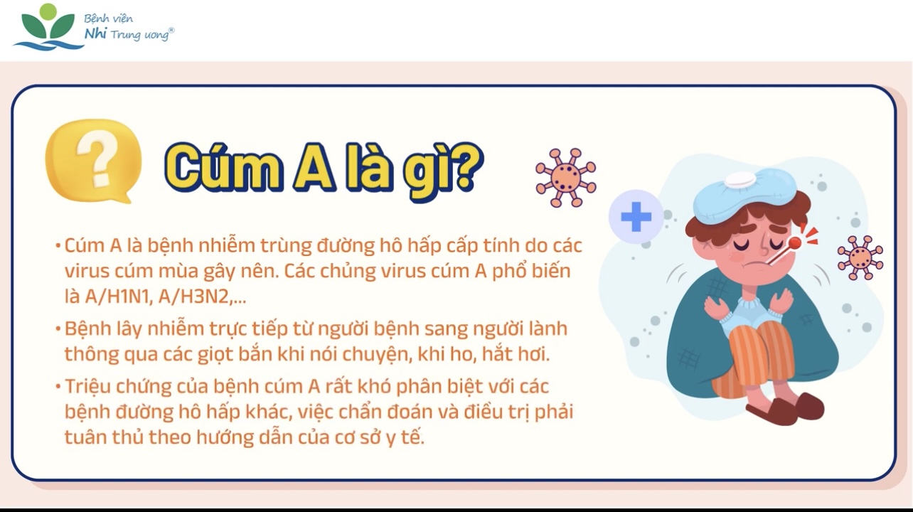 ⚠️ Quan trọng: Khi có dấu hiệu nghi ngờ mắc cúm A, cần hạn chế tiếp xúc và đến cơ sở y tế để được bác sĩ tư vấn và điều trị kịp thời, tuyệt đối không tự ý dùng thuốc kháng virus nếu không có chỉ định.