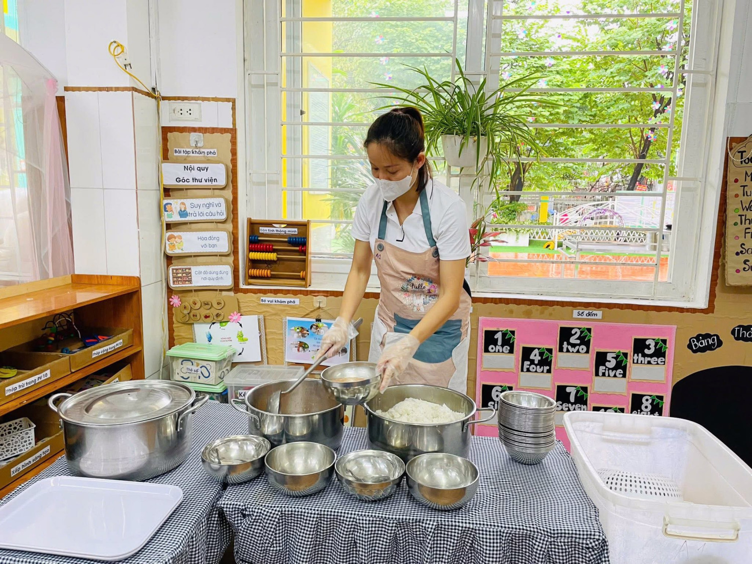 👉Với phương châm tất cả “Vì nụ cười và sức khỏe của các con”, tập thể cán bộ, giáo viên, nhân viên nuôi dưỡng trường mầm non Vạn Phúc luôn tận tâm trong từng bữa ăn, giấc ngủ, mỗi giây phút chăm sóc trẻ là niềm vui của các cô.