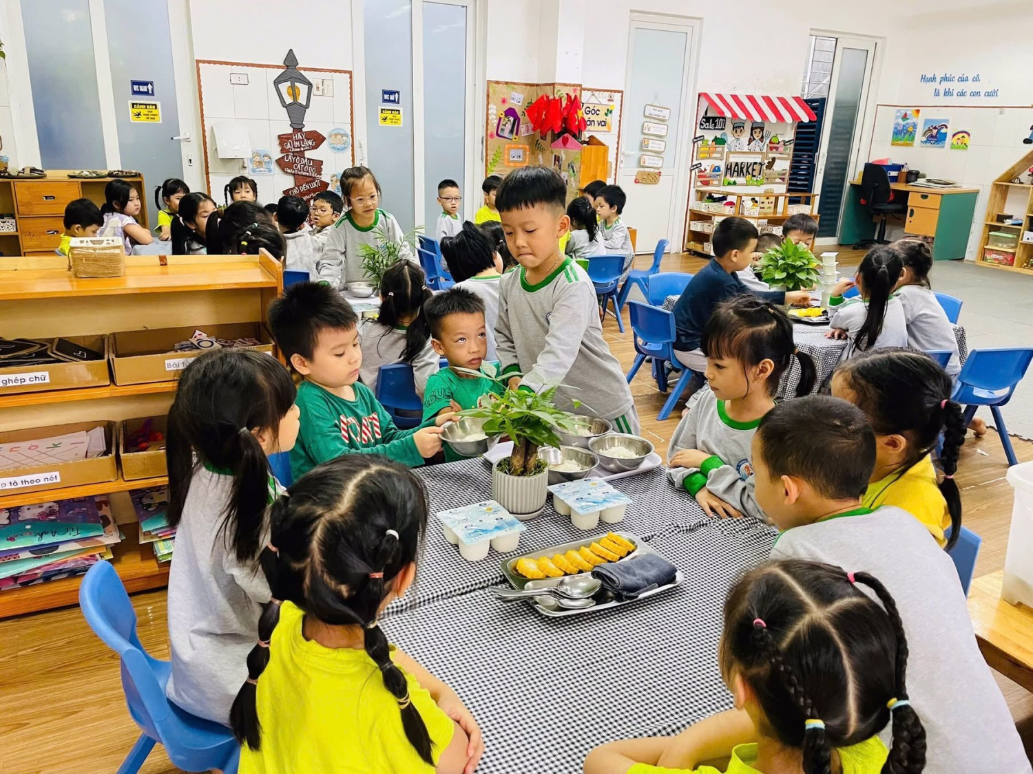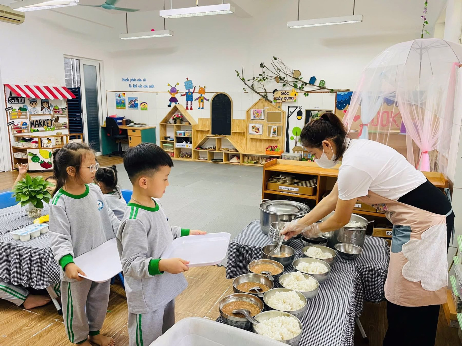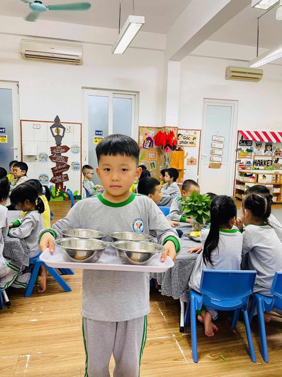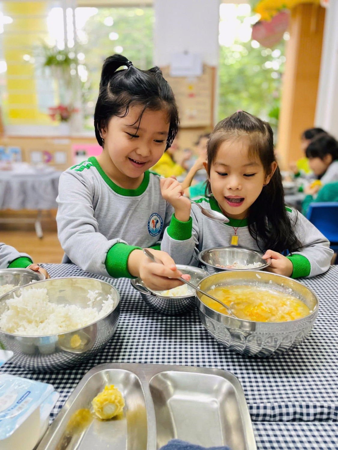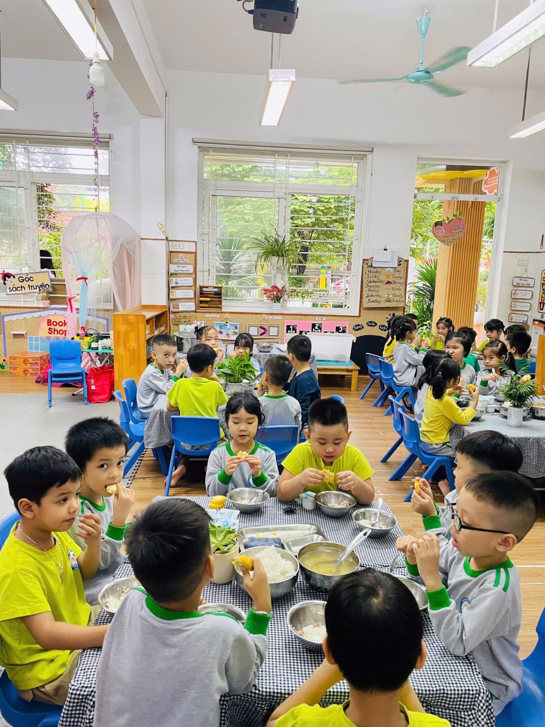 ngoài những giờ học bổ ích và thú vị, các bạn lớp A1 còn có những bữa ăn ngon được các cô và các bác nhà bếp chế biến đầy đủ chất dinh dưỡng và hấp dẫn trẻ, nên bạn nào cũng ăn ngon,ăn hết suất.