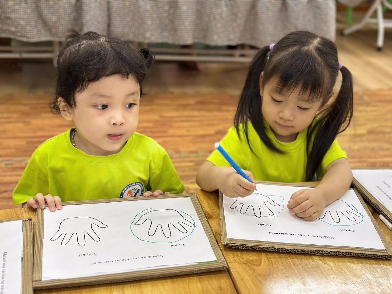 LỚP C4 ❤️ TRẢI NGHIỆM HOẠT ĐỘNG LÀM QUEN VỚI TOÁN “DẠY TRẺ NHẬN BIẾT TAY PHẢI, TAY TRÁI CỦA BẢN THÂN”.