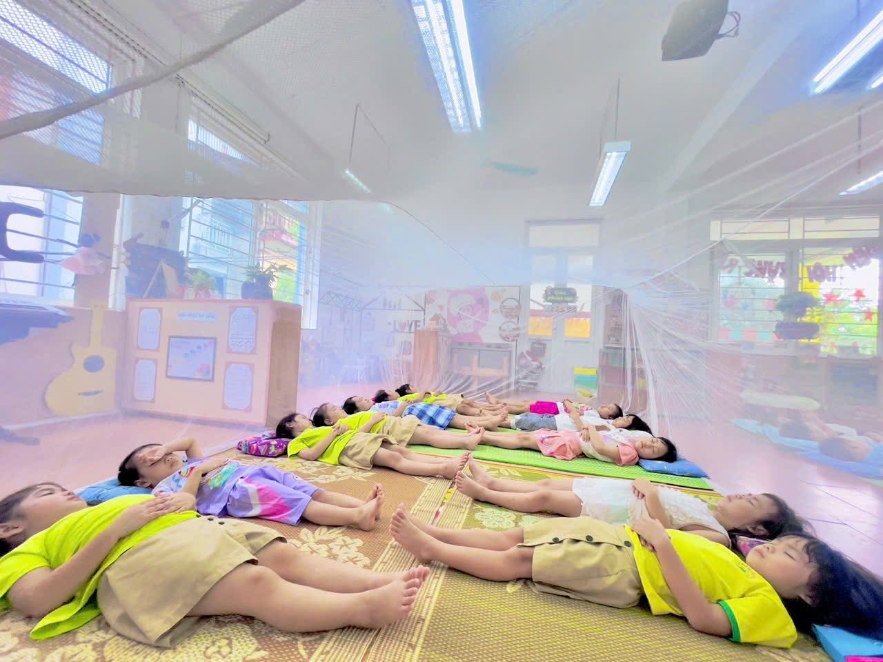👉Giấc ngủ trưa ấm áp là món quà yêu thương cô dành tặng các con mỗi ngày. Một giấc ngủ trưa êm đềm – khi những thiên thần nhỏ say giấc trong vòng tay yêu thương của cô giáo người mẹ hiền thứ 2 ở trường mầm non.