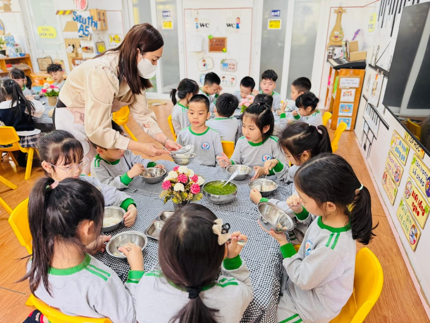 ❤️Bữa trưa của các bé trường Mầm non Vạn Phúc luôn được nhà trường chuẩn bị đảm bảo vệ sinh an toàn thực phẩm, đầy đủ dinh dưỡng và phù hợp với lứa tuổi mầm non. Sau một buổi sáng học tập vui chơi, các bé lớp A5 cùng nhau thưởng thức bữa trưa tại trường, thực đơn hôm nay gồm có các món: