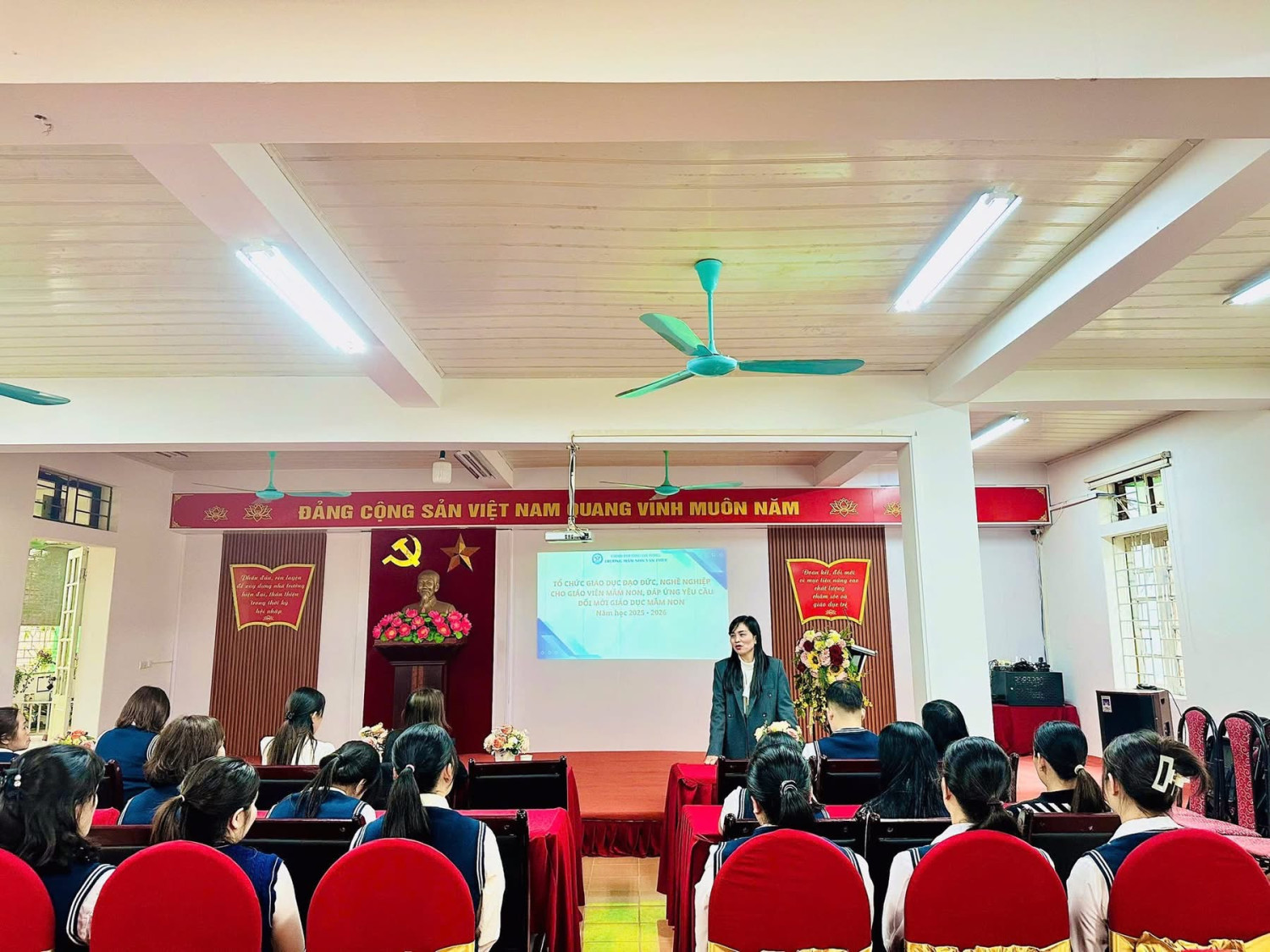 Đặc biệt, hội nghị còn là dịp bồi dưỡng, nâng cao năng lực chuyên môn cho đội ngũ CBGVNV thông qua các chuyên đề trọng tâm, trọng điểm, sát với thực tiễn giảng dạy và yêu cầu đổi mới giáo dục mầm non. Đây chính là nền tảng vững chắc, tạo đà và tiếp bước cho sự phát triển bền vững của công tác chuyên môn trong thời gian tới.