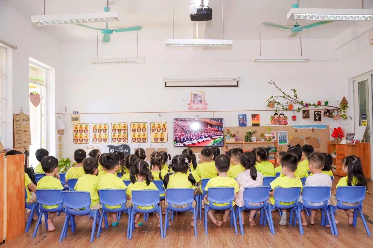 📺 Sau lễ khai giảng, cô và trò cùng hướng lên màn hình theo dõi Truyền hình trực tiếp Lễ kỷ niệm 80 năm Bộ Giáo dục trên VTV1.