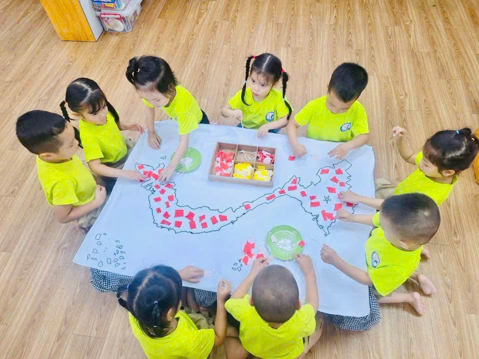🇻🇳 Khi sản phẩm hoàn thiện, các con hân hoan vui mừng, đôi mắt sáng rực lên vì tự hào. Không chỉ là một sản phẩm thủ công, mà đó còn là món quà tinh thần, gieo vào tâm hồn trẻ thơ tình yêu Tổ quốc từ những điều giản dị nhất.