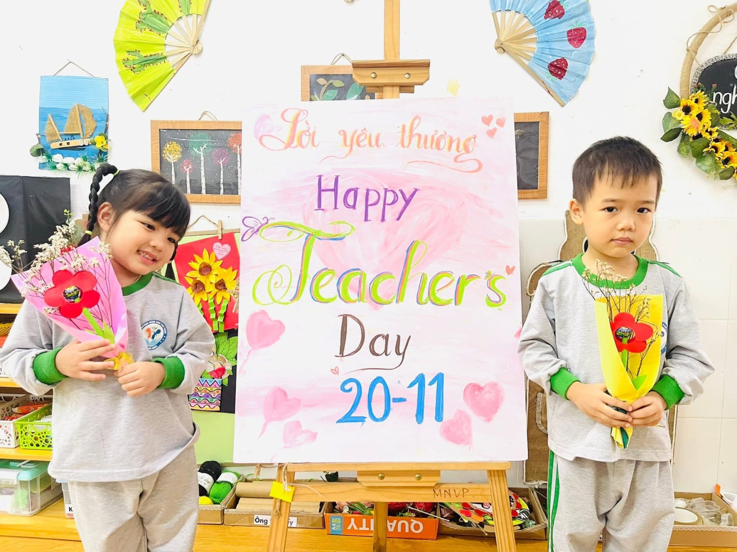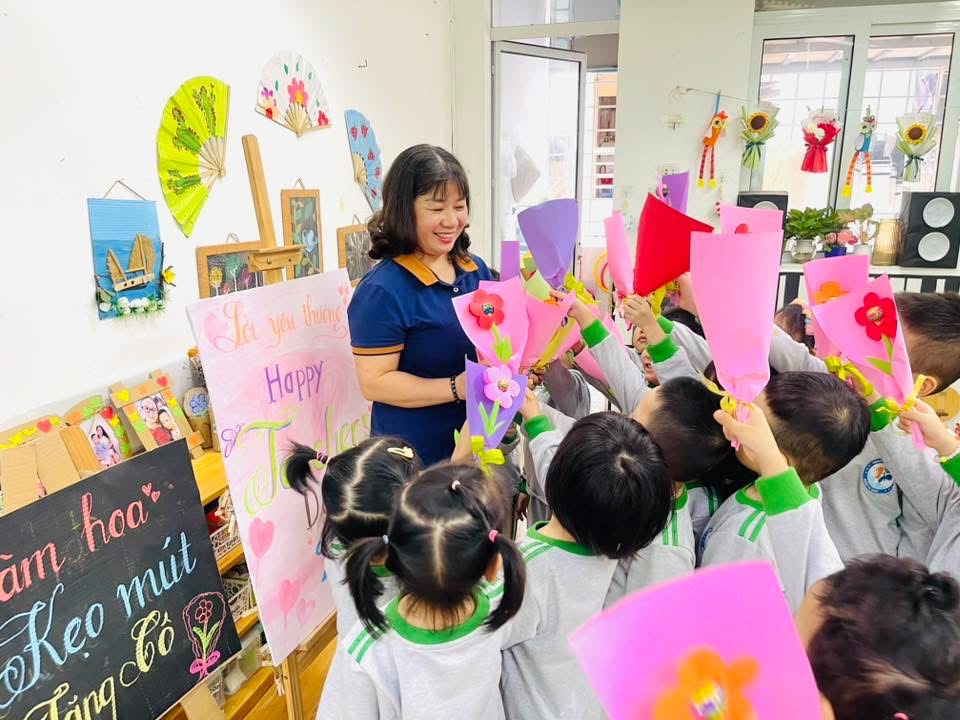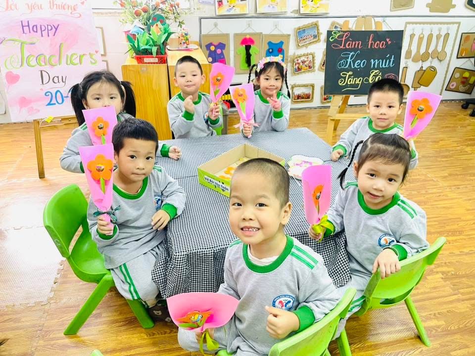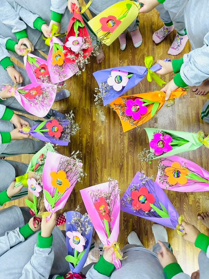 Với giấy bìa và kẹo mút nhỏ xinh, các con đã tạo nên những bó hoa vừa giản dị vừa ấm áp—món quà chứa chan tình cảm dành tặng cô nhân ngày 20/11 🌷✨
