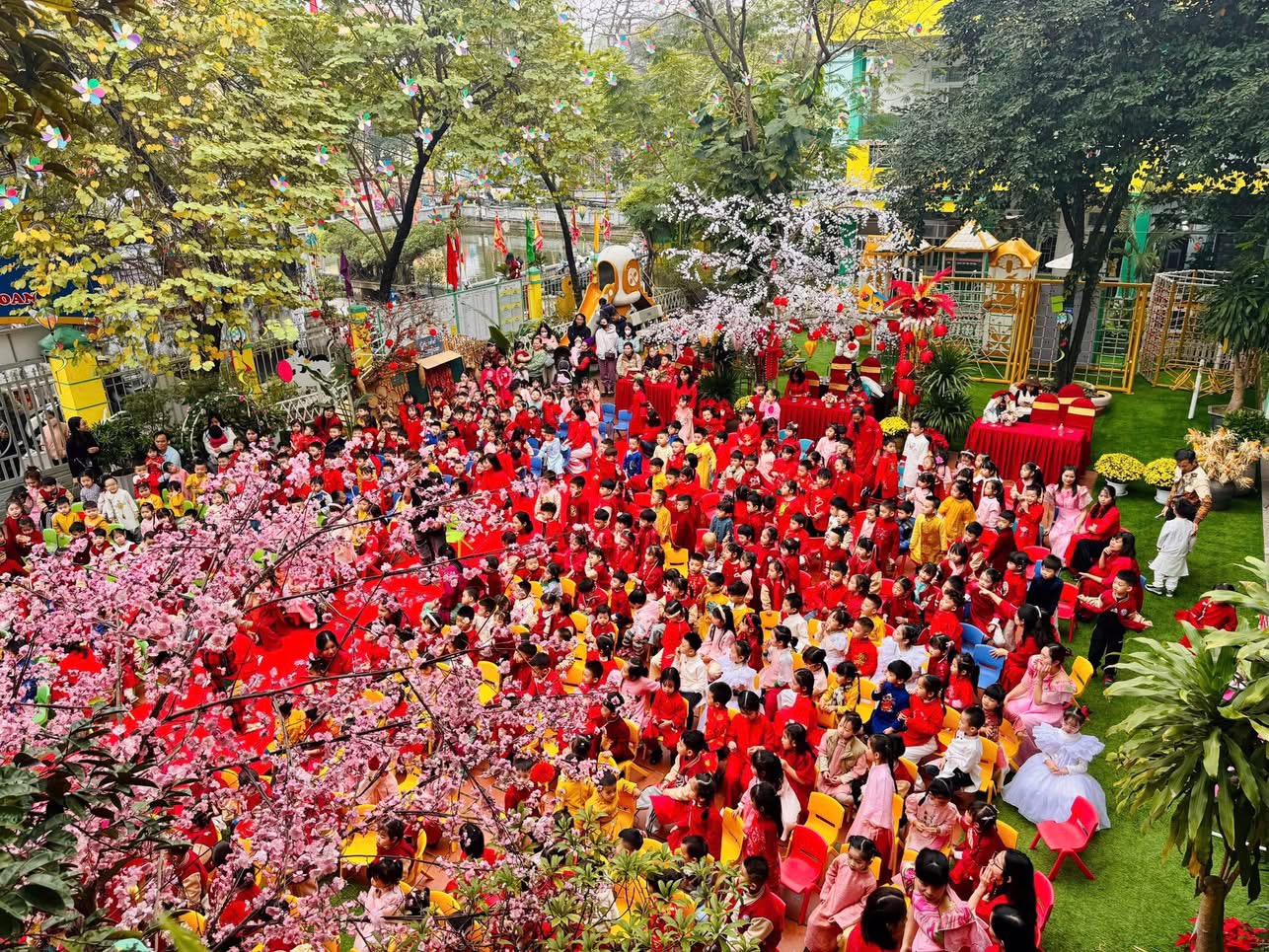 🌼 Những tiết mục văn nghệ đặc sắc do chính các bé và các cô giáo biểu diễn đã mang đến một bầu không khí rộn ràng, tươi vui và đầy sắc xuân.