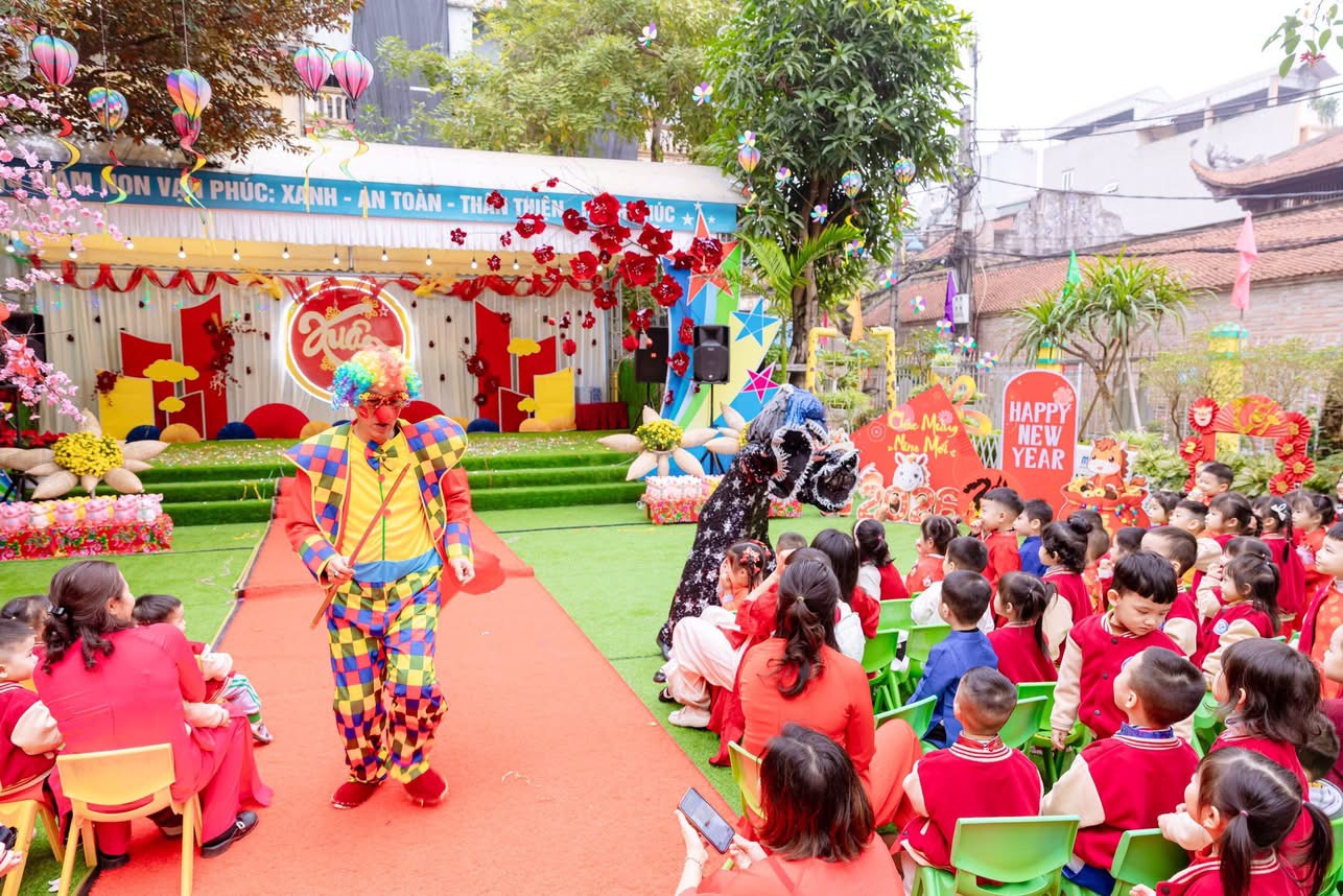 🎪 Các bé còn được thưởng thức và hòa mình vào chương trình biểu diễn xiếc nghệ thuật, ảo thuật hấp dẫn đến từ các nghệ sỹ của Đoàn Xiếc Trung ương. Những màn trình diễn đặc sắc đã mang đến bao ánh mắt tròn xoe thích thú, những nụ cười rạng rỡ và những tràng pháo tay giòn giã làm sân trường như ngập tràn sắc xuân.