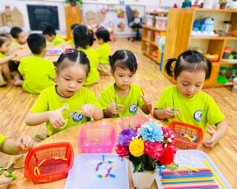 😍 Một buổi sáng tràn đầy màu sắc và tiếng cười tại lớp B2 - Trường Mầm non Vạn Phúc, khi các bạn nhỏ cùng nhau xâu vòng tay từ những đoạn ống hút đủ màu sắc.