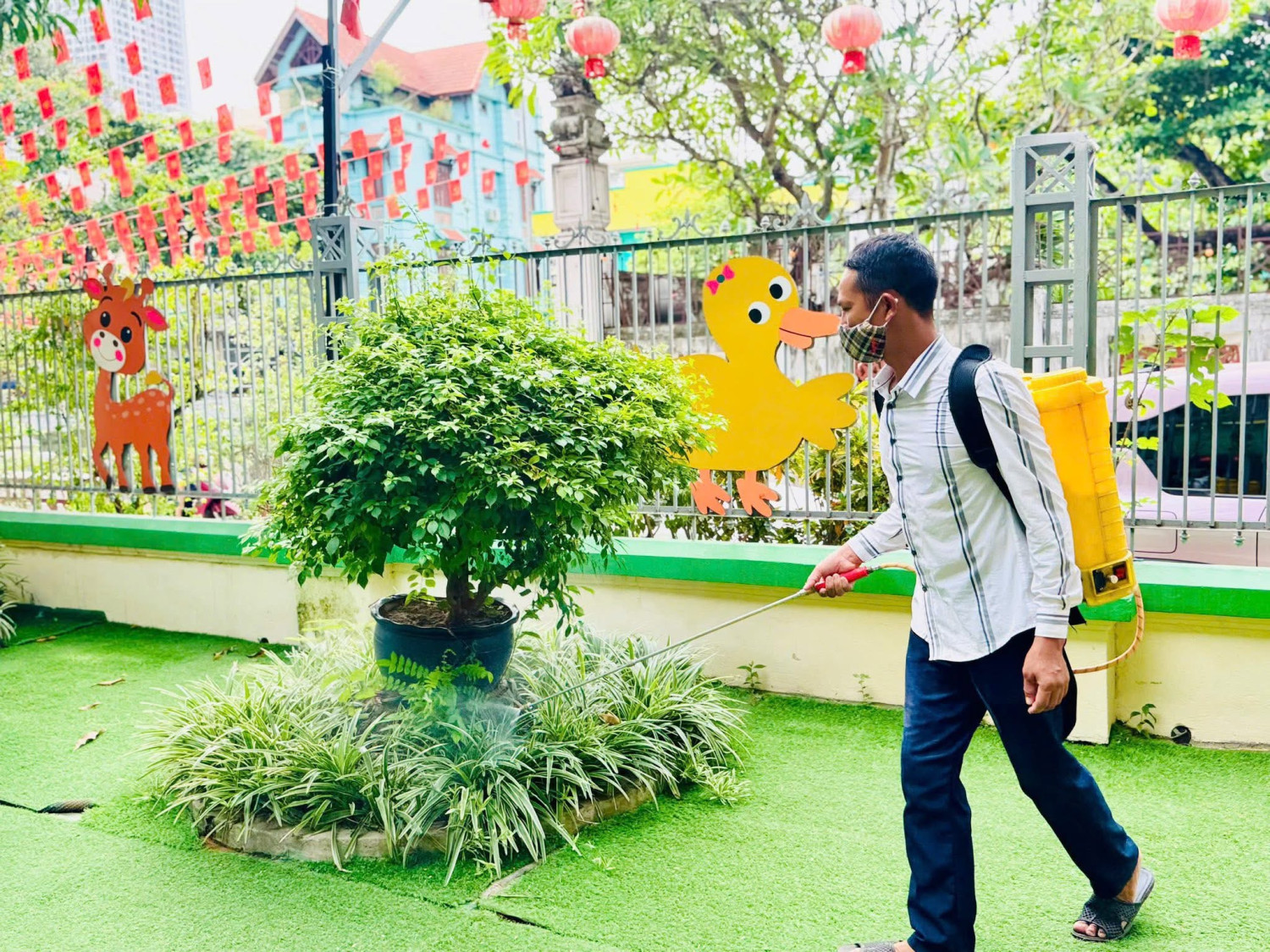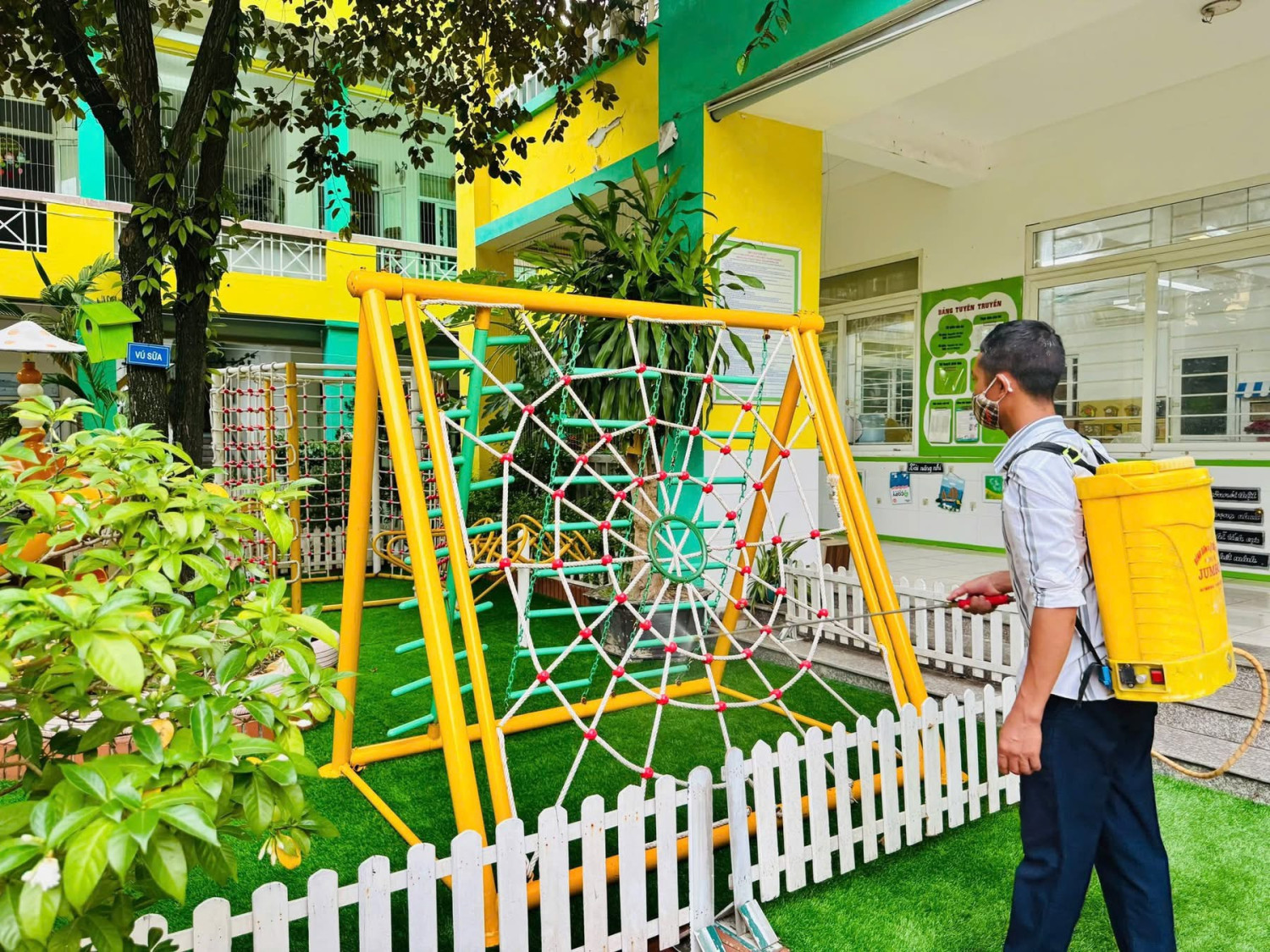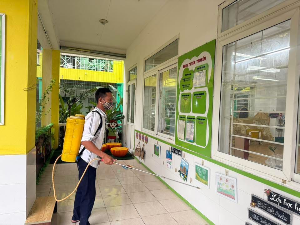 📸 Dưới đây là một số hình ảnh ghi lại quá trình phun muỗi tại các khu vực lớp học, sân chơi, hành lang, nhà vệ sinh và khu vực xung quanh trường.
