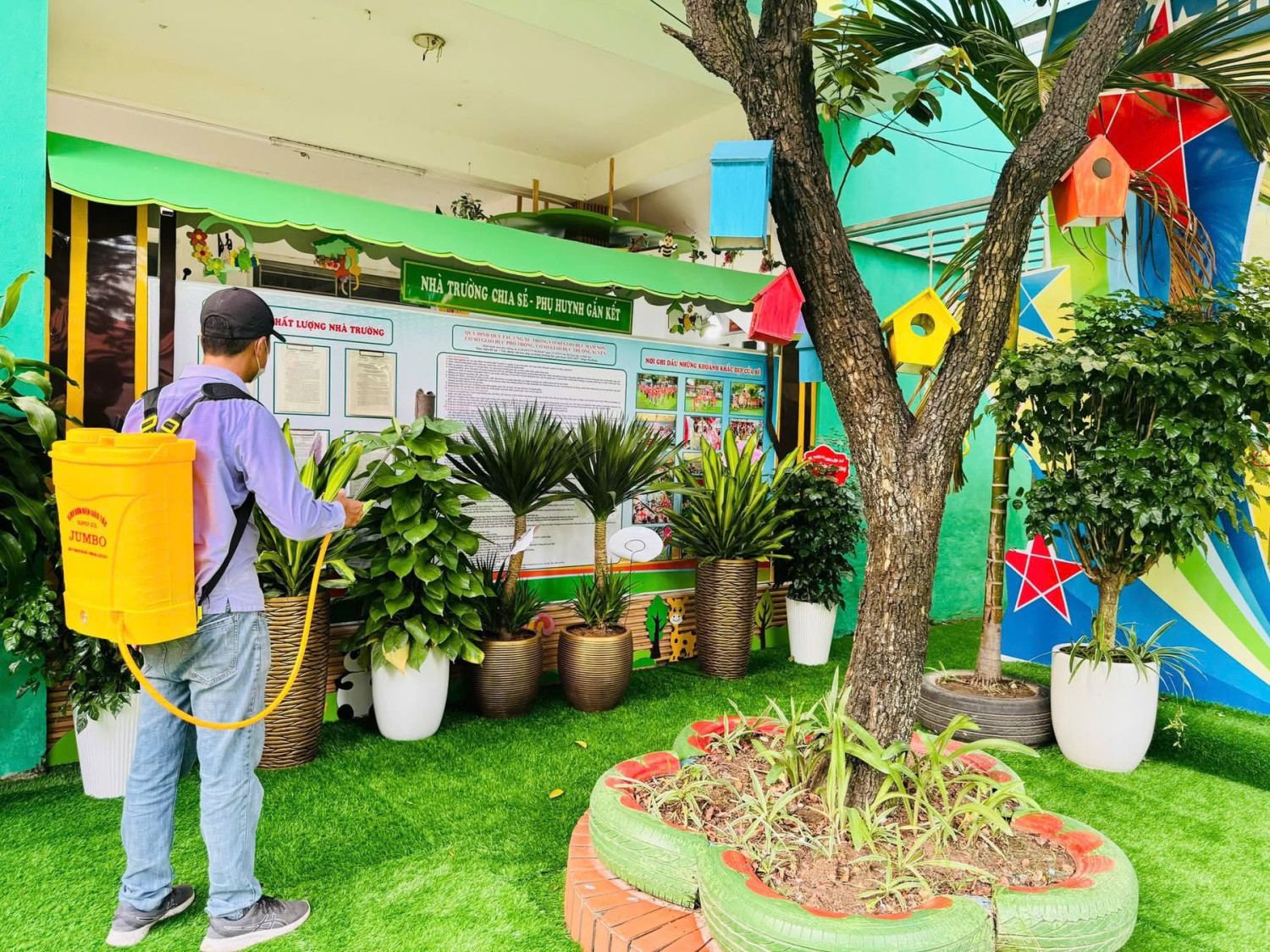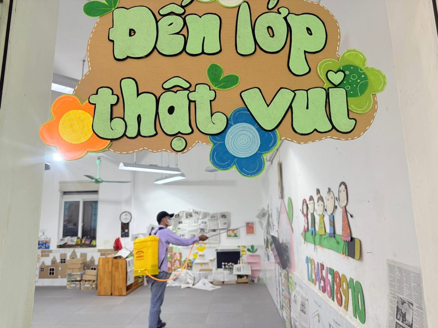 👉 17h30 chiều thứ 7 ngày 13/9/2025 nhà trường đã phối hợp với cơ quan y tế tiến hành phun hóa chất diệt muỗi và côn trùng trong toàn bộ khuôn viên trong và ngoài lớp nhà trường.