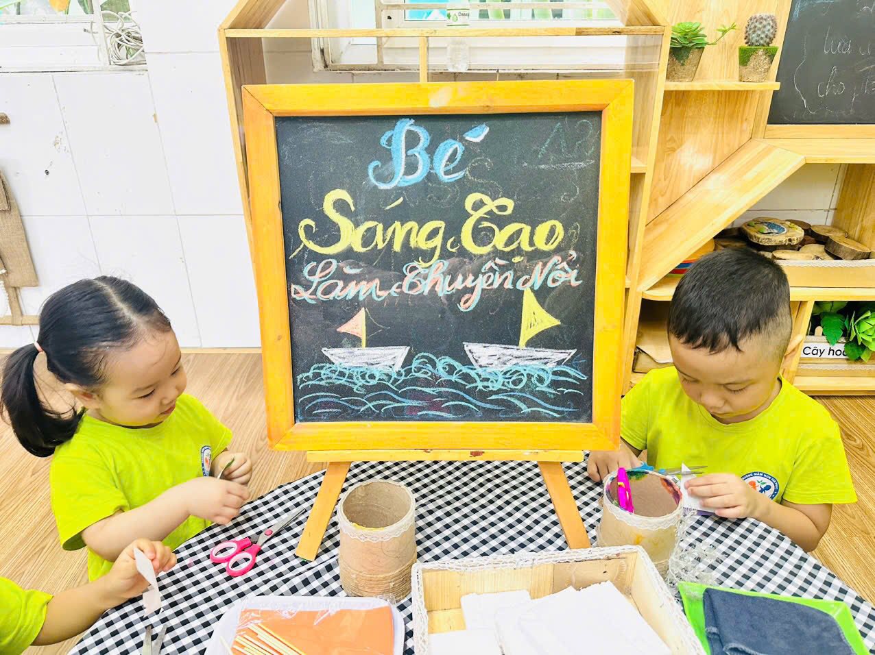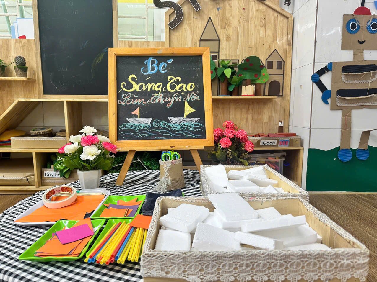 Chỉ từ những nguyên vật liệu đã qua sử dụng cô và trò, đã sáng tạo ra những con thuyền thật đẹp để các con có một buổi trải nghiệm đầy lý thú.